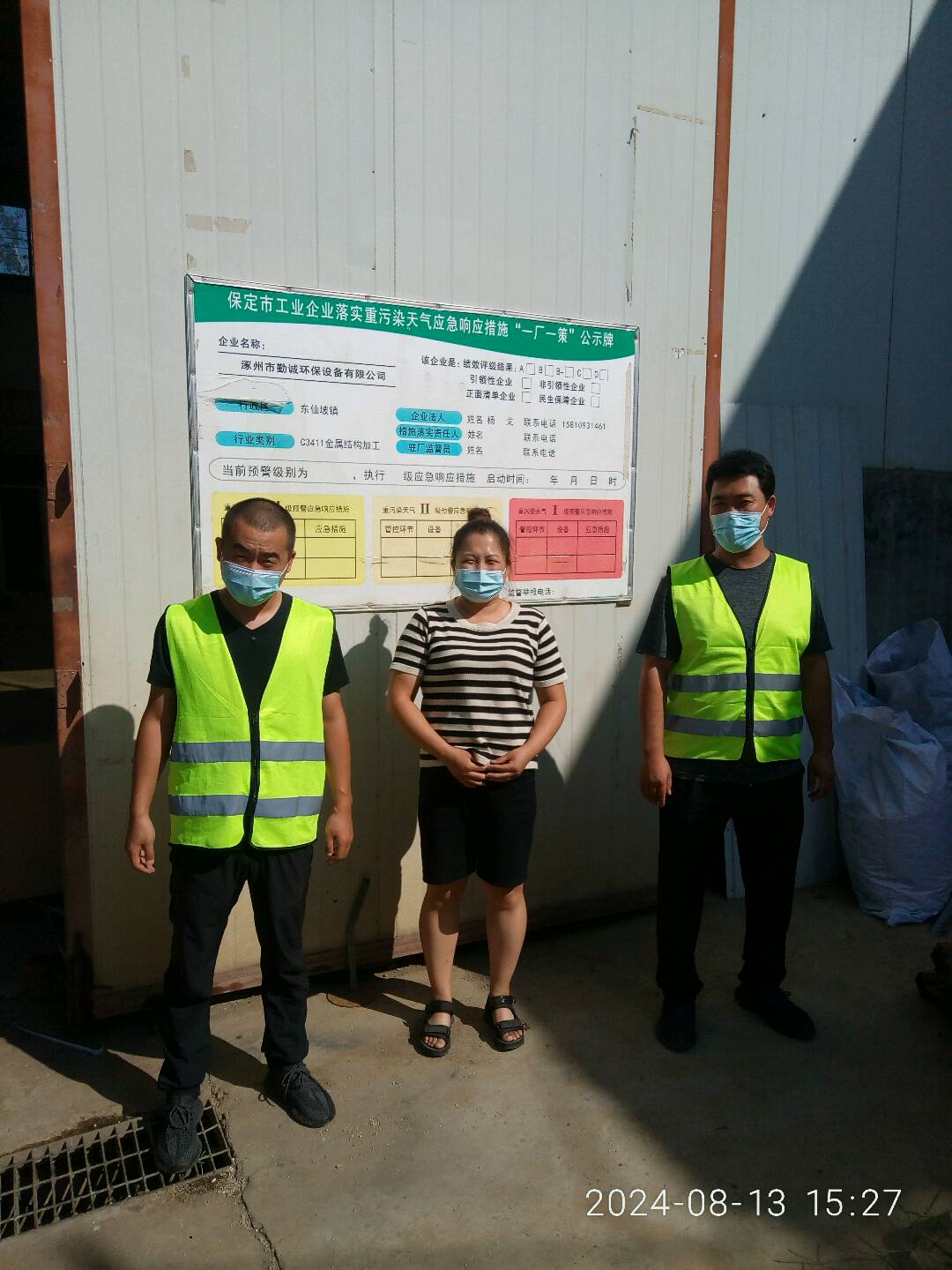 现场采样检测人员 陈立红、解超超 用人单位陪同人 张振雪 时间 2024-08-13