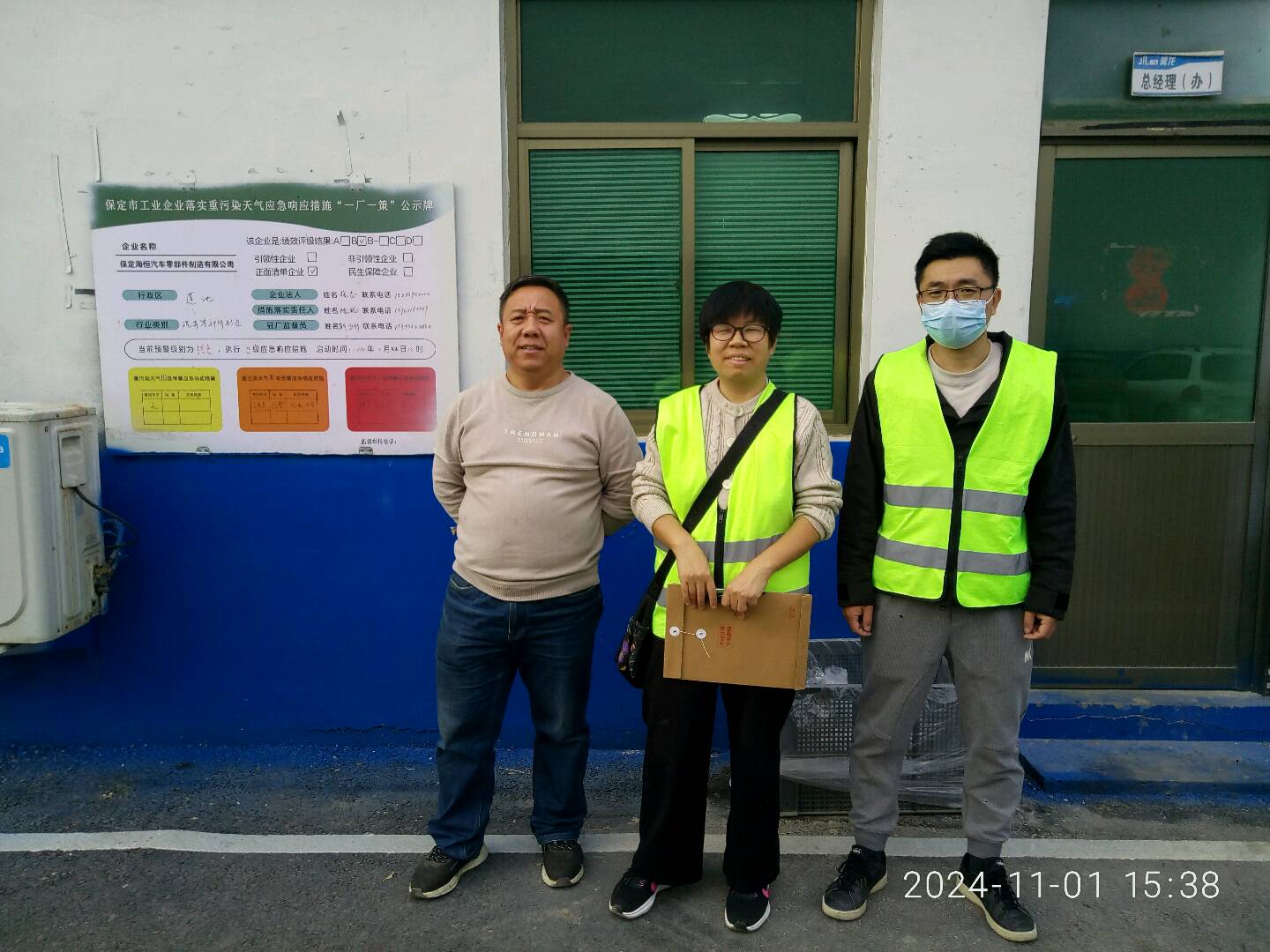 现场采样检测人员 陈立红、刘成亮 用人单位陪同人 高文学 时间 2024-11-01-2024-11-03